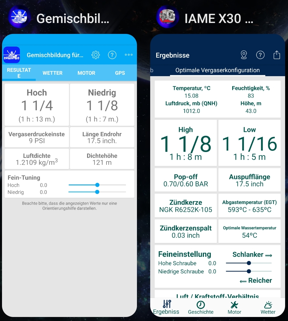 Ich habe mittlerweile eine zweite app für die Gemischbildung meines X30 und nun stehe ich vor einem kleinen Rätzel.