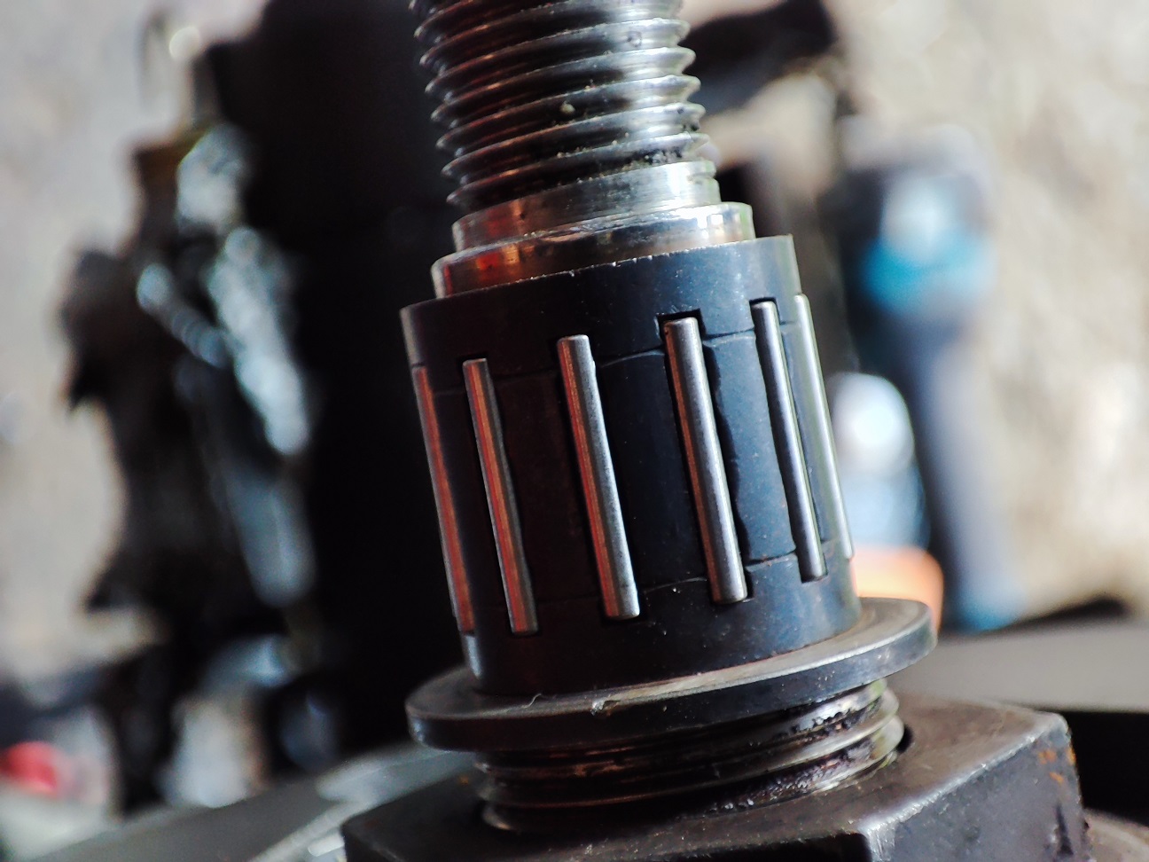 Und wenn du vom großen Gewinde hinterm Nadellager ca. 1mm wegdrehst auf dem selben Durchmesser der Welle am Nadellager?