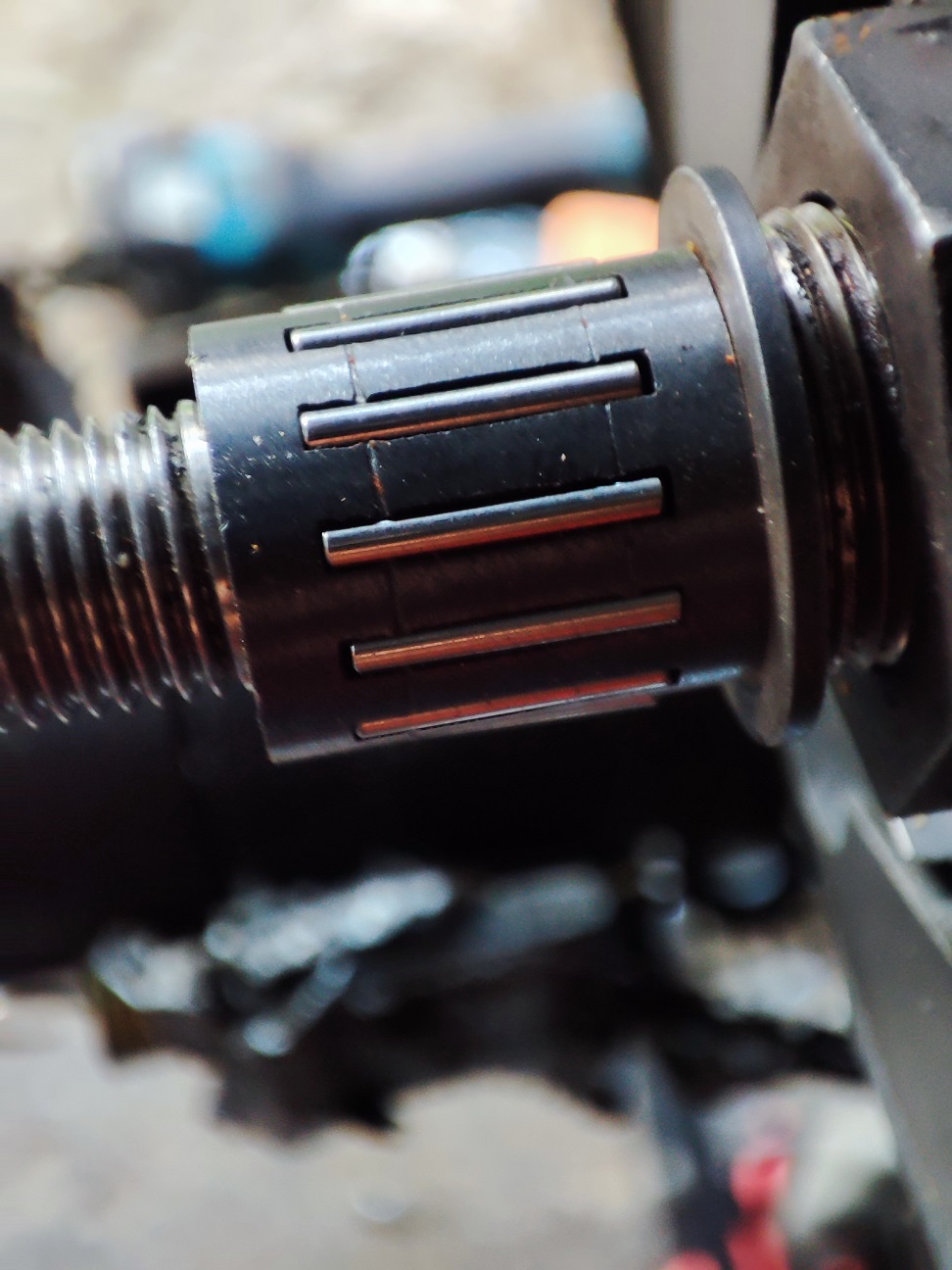 Und wenn du vom großen Gewinde hinterm Nadellager ca. 1mm wegdrehst auf dem selben Durchmesser der Welle am Nadellager?