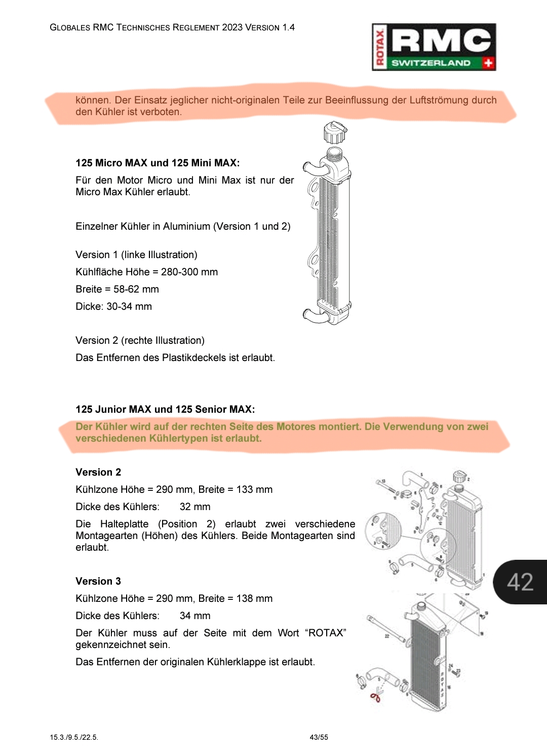 Leute, wir reden hier vom Rotax-Reglement. Da ist nichts mit umbauen auf größeren Kühler.