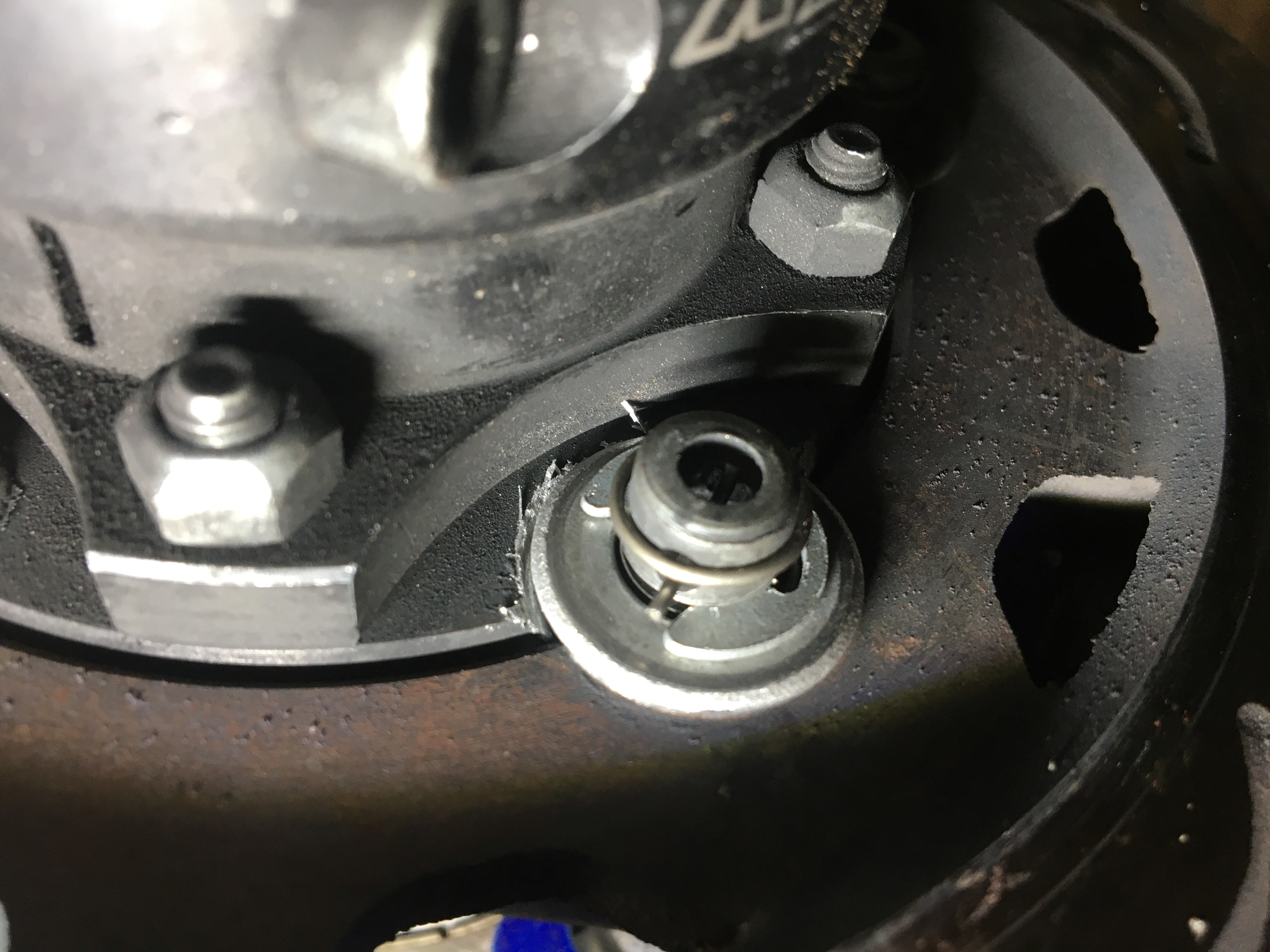 Teilweise hat sich alles schon richtig in die Bremsaufnahme eingearbeitet, siehe Fotos. Die Bolzen selbst sind alle nicht eingelaufen und sehen gut aus.