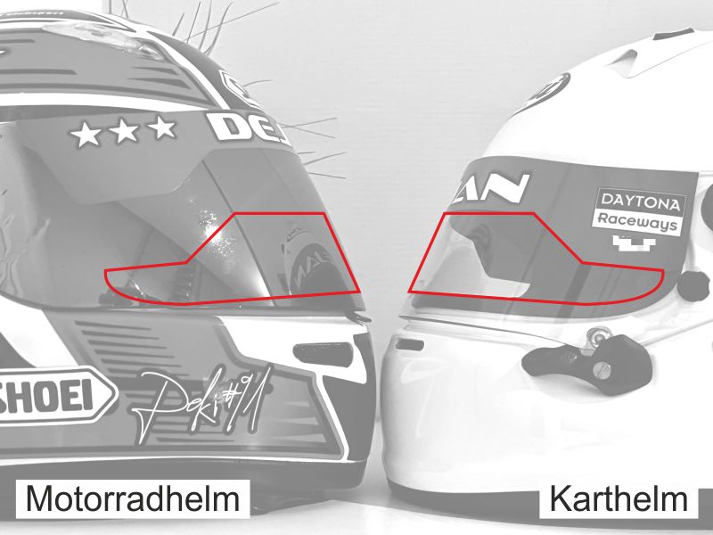 Ich habe das Sichtfeld vom Karthelm in rot markiert und es dann auf den Motorradhelm gespiegelt.
