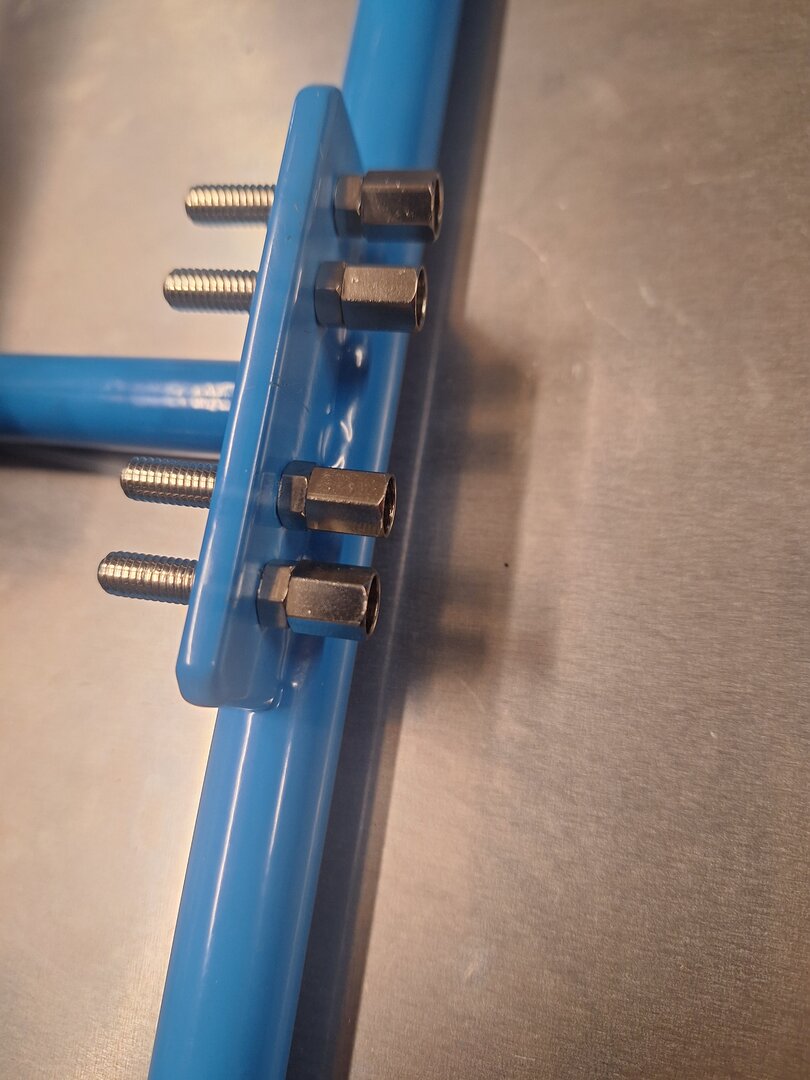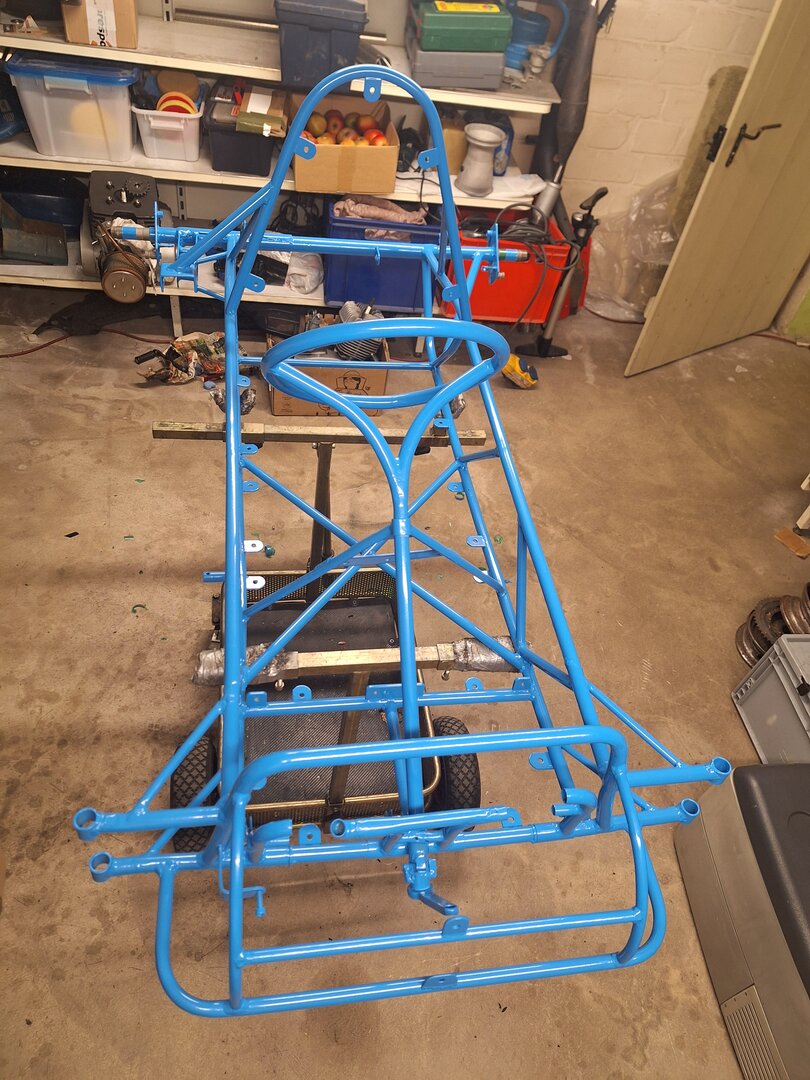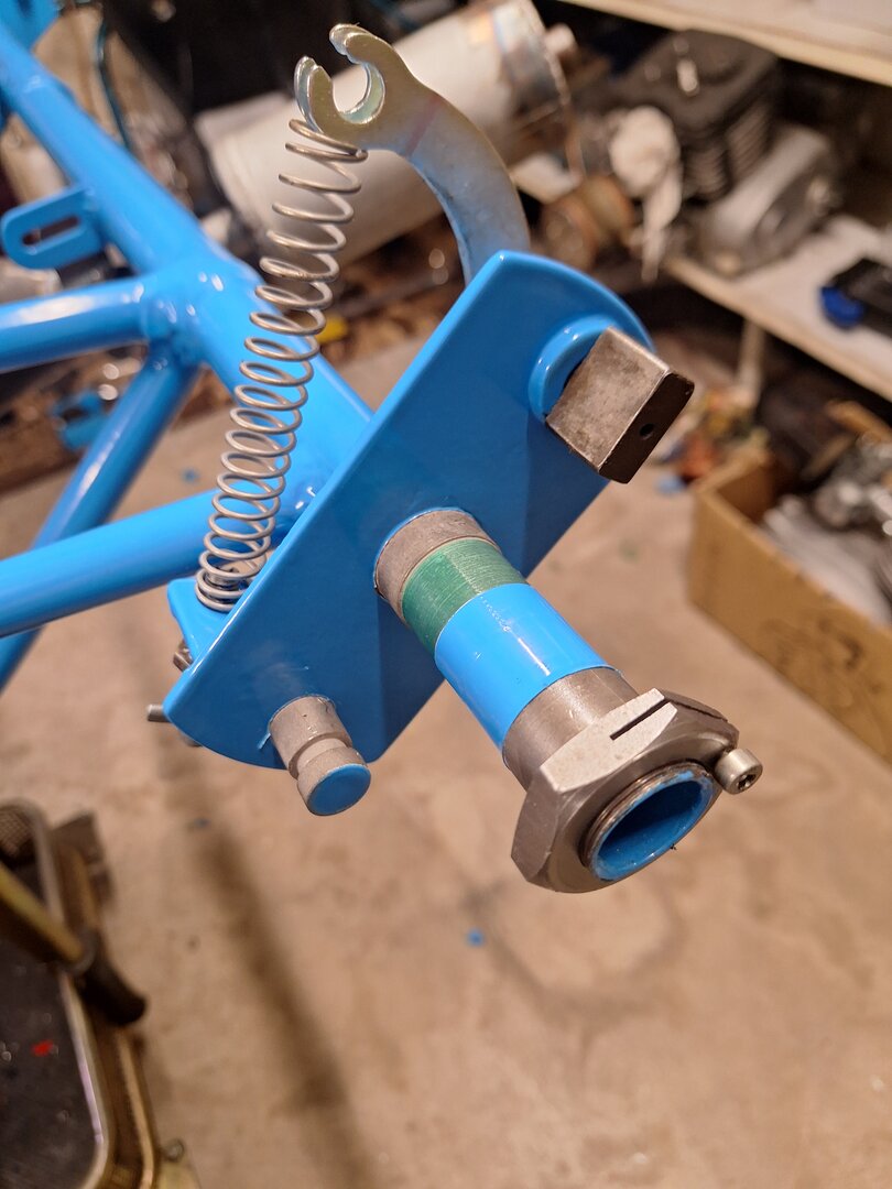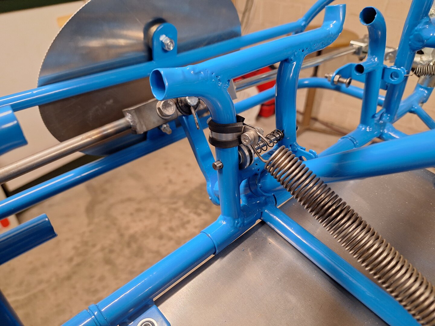 Das Ding ist nun neu gepulvert, meine Farbwahl fiel auf ein ganz schlichtes und klassisches Blau. Das wird in Verbindung mit Silber, Aluminium und den galvanisch verzinkten Teilen ganz chic aussehen.