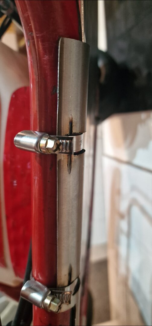 Ich hatte mir mal welche aus einem POM-Rohr anfertigen lassen: 2 Nuten für Kabelbinder eingefräst, damit diese nicht während der Fahrt durchschleifen und dann das POM-Rohr der Länge nach aufgeschnitten. Unkaputtbar. Inzwischen nutze ich welche aus Metall, die sind flacher.