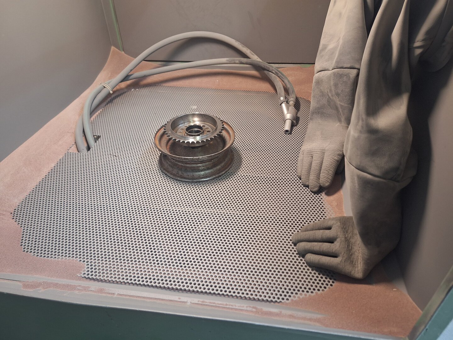 Vor zwei Wochen hab ich den Rahmen weg gegeben, nochmals überstrahlen, da die längere Zwangspause schon wieder oberflächlichen Rost verursachte.