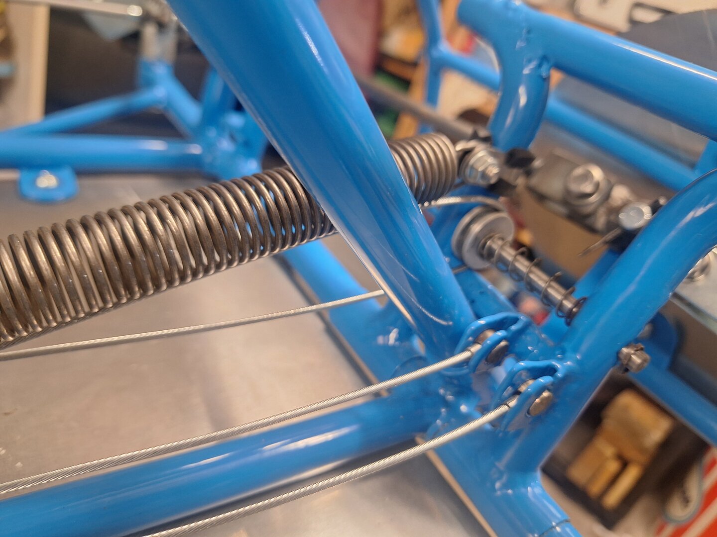 Das Ding ist nun neu gepulvert, meine Farbwahl fiel auf ein ganz schlichtes und klassisches Blau. Das wird in Verbindung mit Silber, Aluminium und den galvanisch verzinkten Teilen ganz chic aussehen.