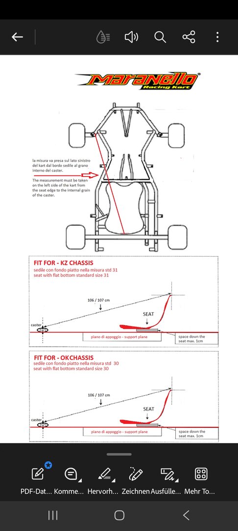 Ich habe ein maranello dd2 mk3 chassis, da sollte der sitz ca 106 bis 107cm ab der vorderachse verbaut werden. Leider wiege ich 78 bis 80kg und muss den etwas grösseren sitz verbauen (greyhound r1 gr 33). Würdet ihr auf die originalmasse gehen? Hab mal gehört, dass für einen etwas schwereren fahrer im dd2 der sitz bis Anschlag auspuff/halter montiert werden sollte...