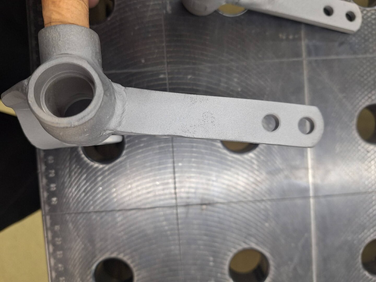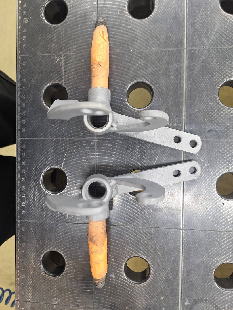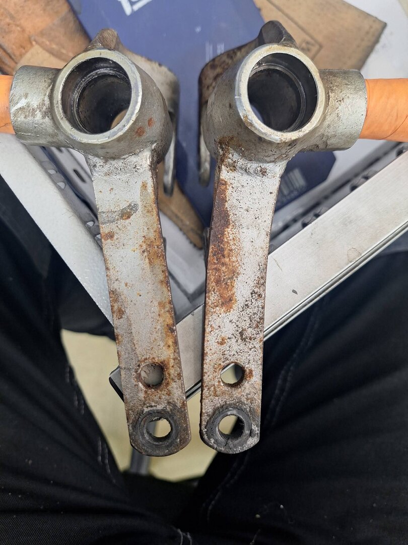 Die, die aber an der Spurstangenaufnahme krumm waren, habe ich alle mittels großem schweren Schraubstock bzw. Werkstattpresse gerichtet.