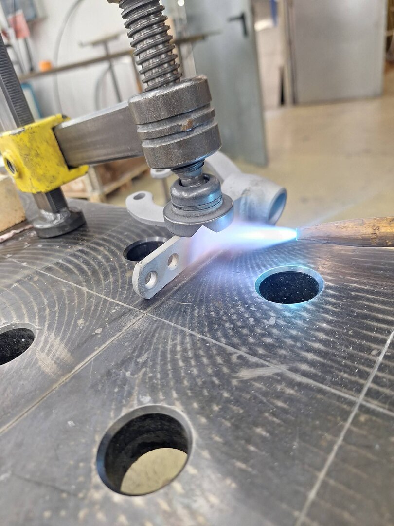 Wichtig ist, dass die Teile passend auf der Presse liegen, sonst sind sie nach dem ersten Versuch noch krummer als vorher.