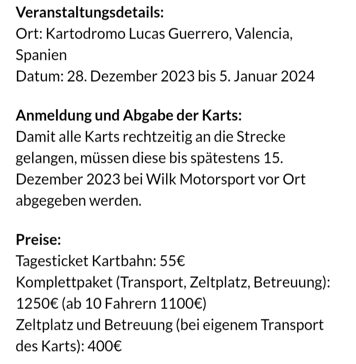 Falls nicht für die meisten wohl raus. Eigenes Kart mit in den Flieger oder im Transporter hinfahren, das macht vermutlich kaum jemand.