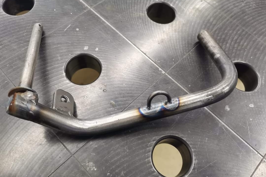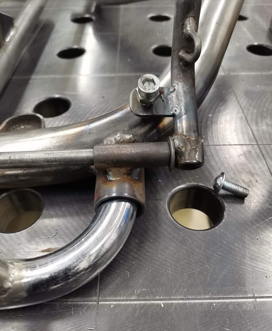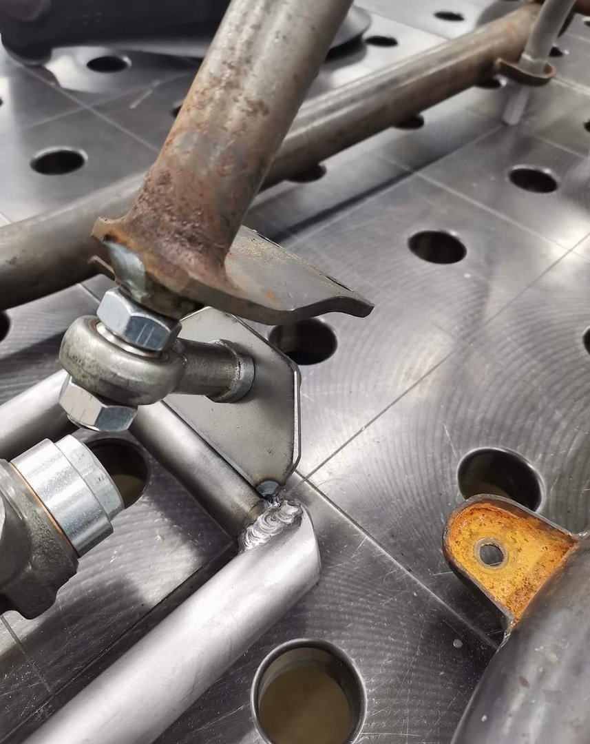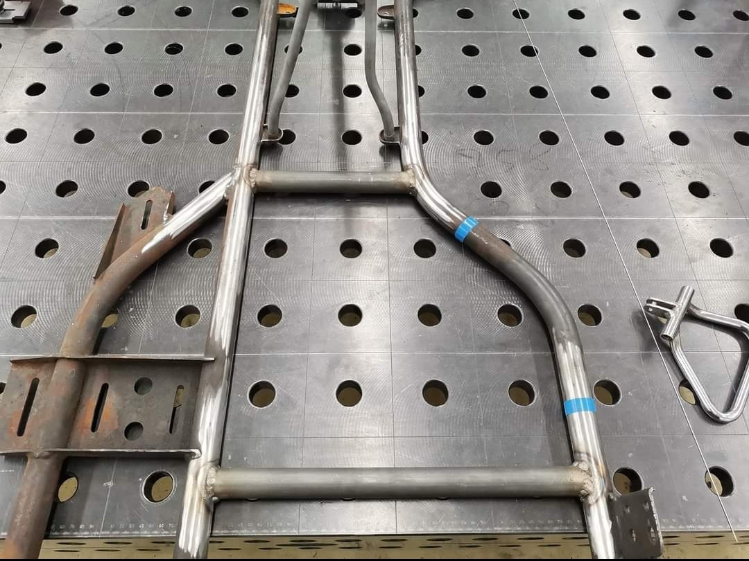 Schweißarbeiten am Rahmen... Neue Querrohre eingesetzt, Sitzhalterung unten und Sitzstreben sind neu entstanden. Alte, schraubbare Lenksäulenabstützung kam ebenfalls ad acta und entstand neu, um Platz für den Tank zu schaffen.