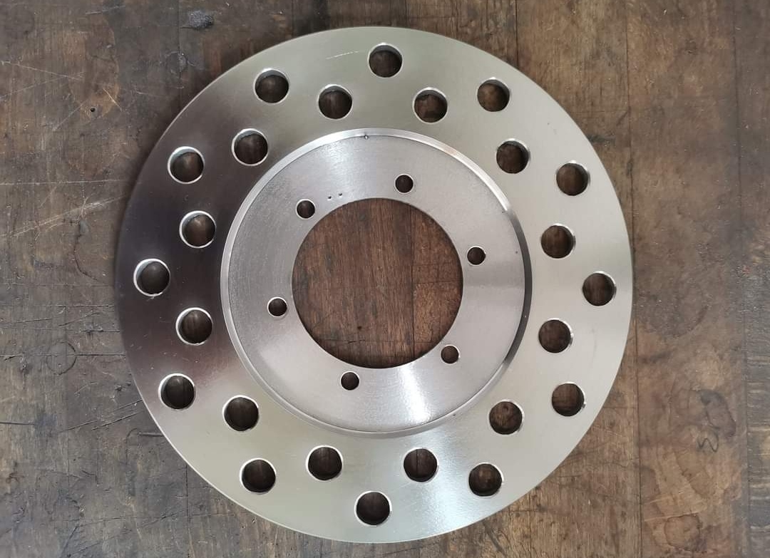 Ne, die ist tatsächlich nicht gestrahlt. Die Oberfläche ist so bissel reudig, schon von Anfang an. Mal sehen wie es bremst, zur Not wird die auf der Drehbank nochmal bissel geglättet.