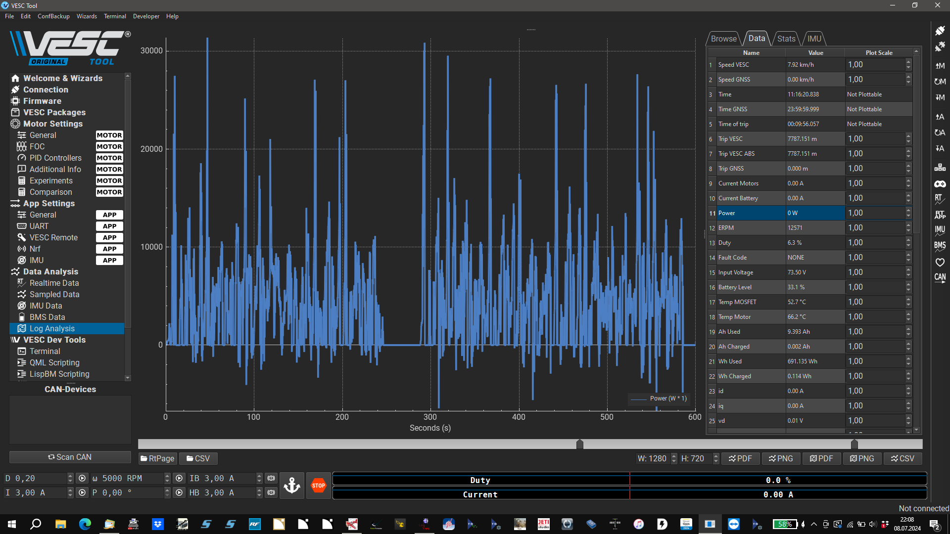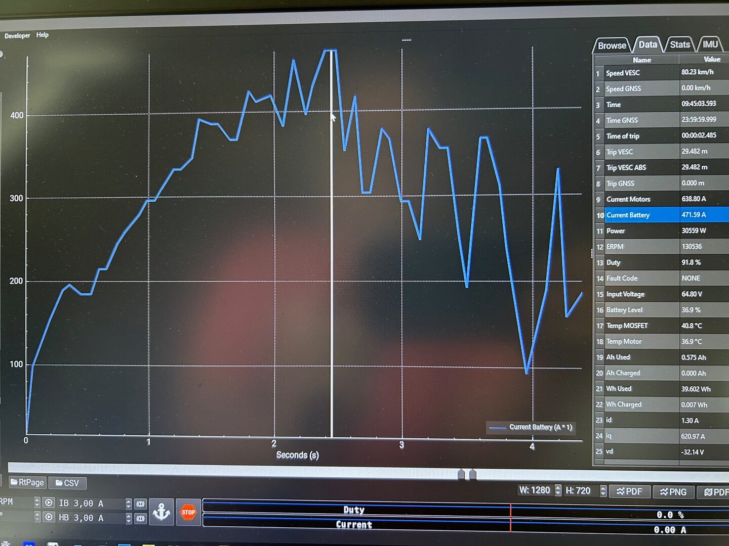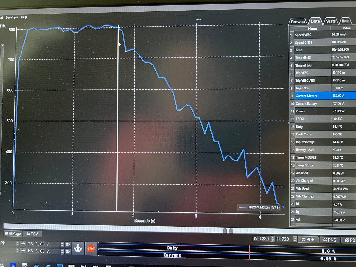 Dazu noch das 800A Motorstrom und 470A Batteriestrom Log, das ist auch wirklich das Limit für die Akkus und geht nur kurzzeitig.