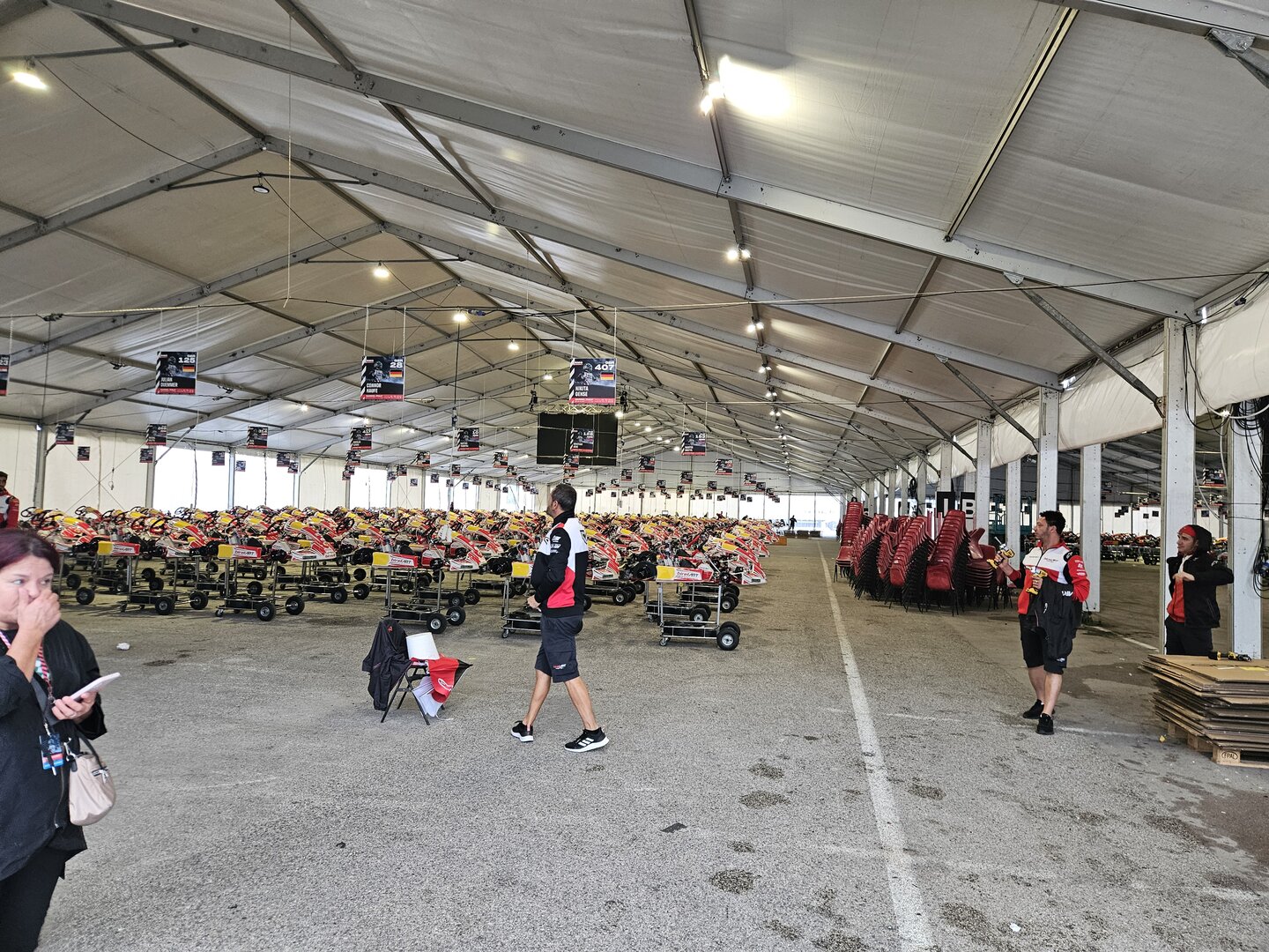Es ging also bereits am Donnerstagmorgen rüber nach Genk. Dank der recht kurzen Anfahrt von weniger als 2h, war ich kurz nach 9 an der Strecke. Völlig ungewohnt stand dieses Mal mein Kart schon im Teamzelt anstatt in meinem Anhänger. Also habe ich mir das, für mich neue Material, erstmal angeschaut und zusammen mit meinem Mechaniker auf mich angepasst. Mein Motor drauf, standard freeline Sitz verbaut (der auch im Weltfinale gefahren werden muss), Lenkradposition/Schaltwippen/Pedale etc auf mich eingestellt.