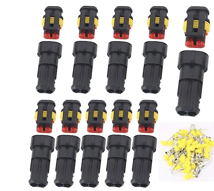 Stecker fürs Mychron ist ein 711-5 einfach googeln, Stecker Superseal gibt es Sortimente. Kabel hab ich 0,5 mm für den Zwischenstecker und 1 Quadrat für das Kabel zur Batterie. An meiner LI Ion ist das verschraubt mit Ringösen.