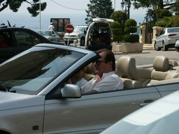 . Das Feeling ist auch genial. Zudem trifft man in Monaco ständig Promis, was ich auch nicht so schlecht fand. Bei meinem letzten Besuch gelang mir dieser Schnappschuß. Als ich Ihn sah: Sir Roger Moore, kam mir das vor als würde ich einen alten Bekannten treffen. Entsprechend verblüfft schaute er mich auch an