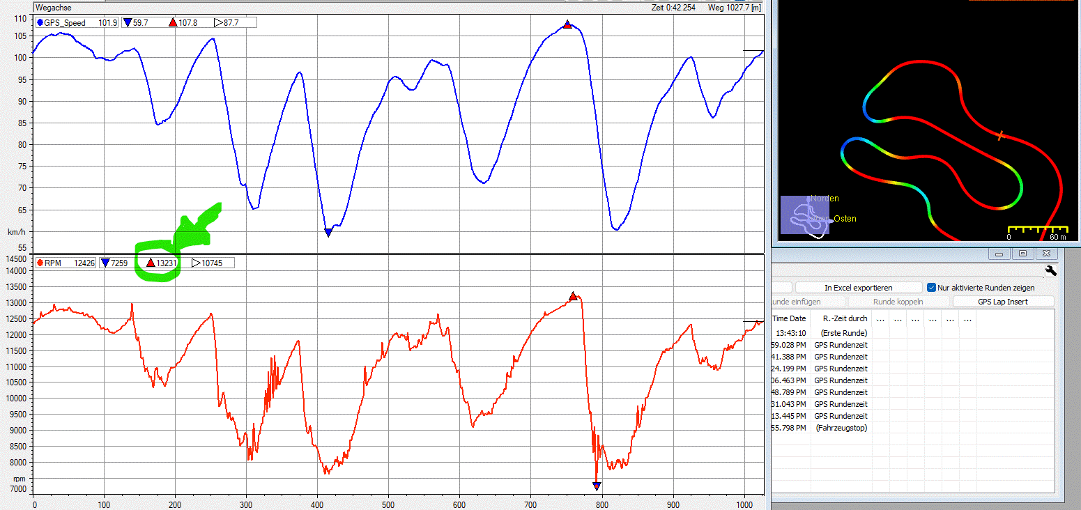 Ich wollte nur zeigen dass man nicht über 14.000rpm drehen muss um gute Zeiten in Bruck zu fahren, bzw. eine Diskussion über den optimalen Drehzahlbereich vom Rotax starten.