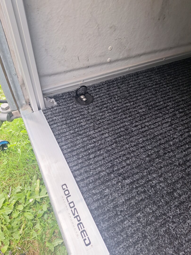 Auch sind die Zurrösen nun wieder eingebaut. Die vorderen sitzen wieder am ursprünglichen Platz, die hinteren hab ich ein ganzes Stück nach hinten versetzt, um das Kart da vernünftig anleinen zu können.