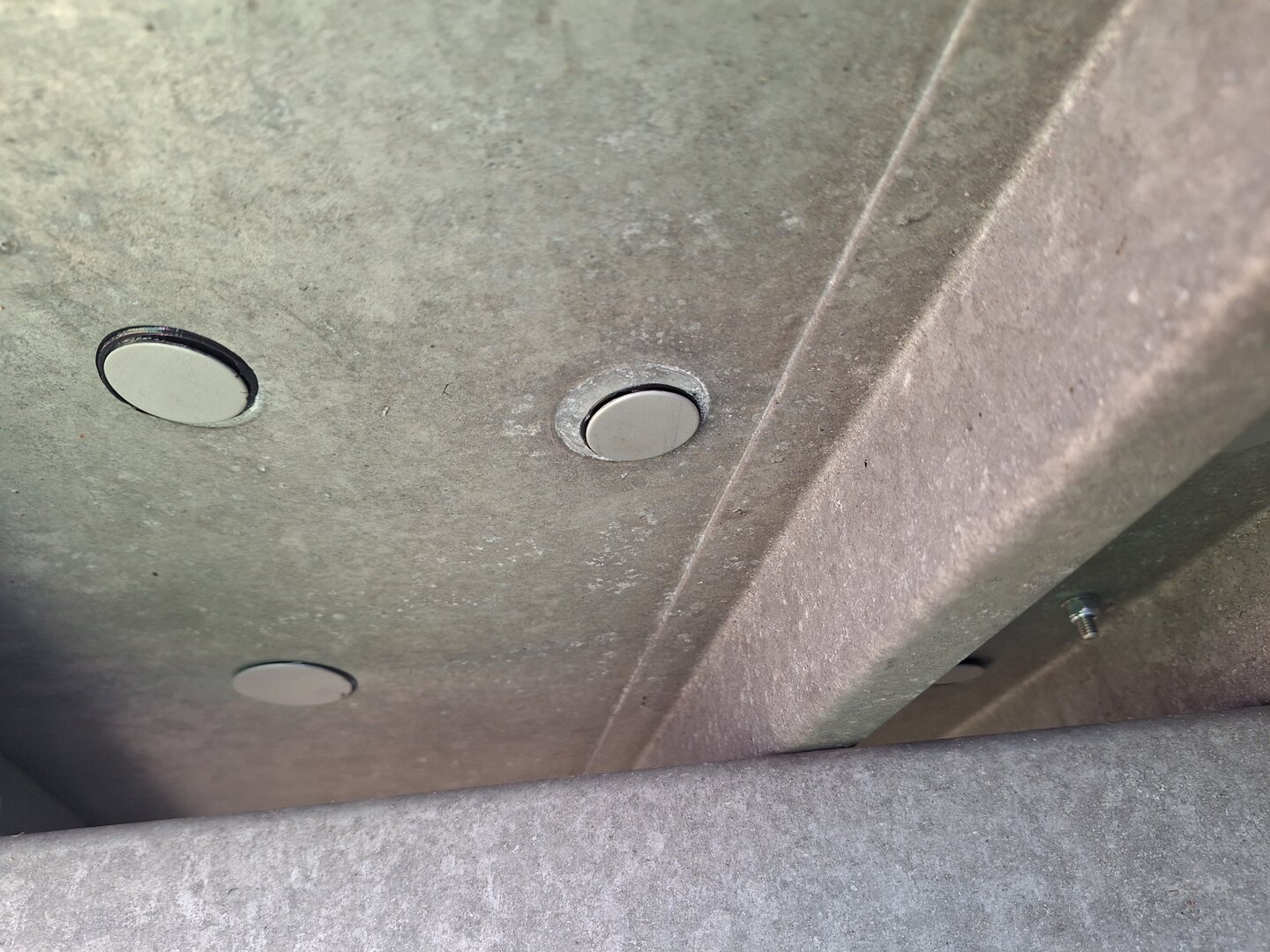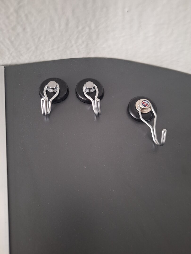 Innen hab ich auch noch paar Ronden eingeklebt, da kommen die Magnethaken dran. Sei es zum Jacke aufhängen, oder was auch immer. Die Neodymmagnete haben eine Haftkraft bis zu 40KG. Ne Jacke oder Kombi tragen die locker. Die überstehende Klebemasse wird nach dem Aushärten noch entfernt.
