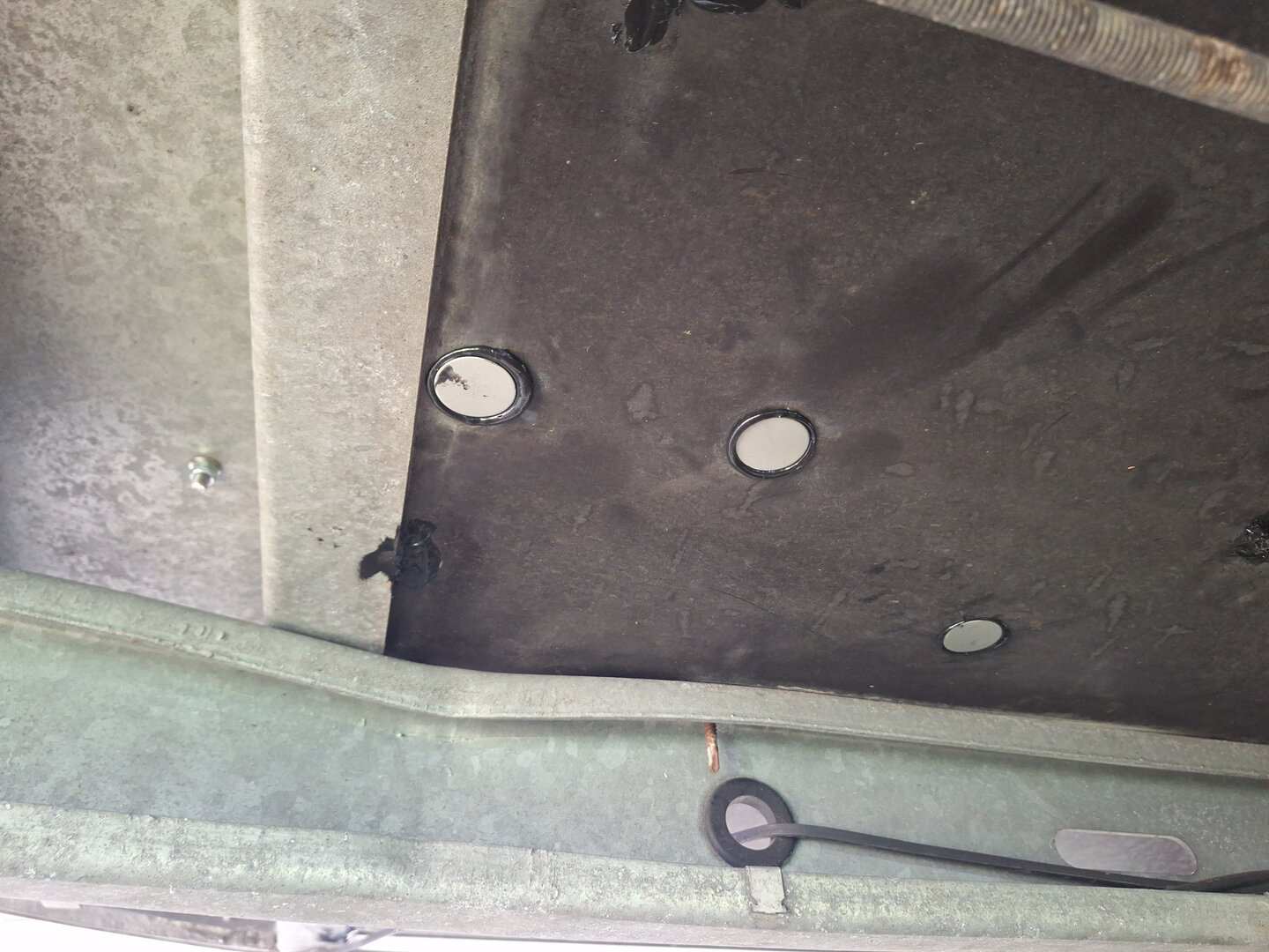 Heute hab ich im Anhängerboden die Bohrlöcher verschlossen, die nicht mehr gebraucht wurden.