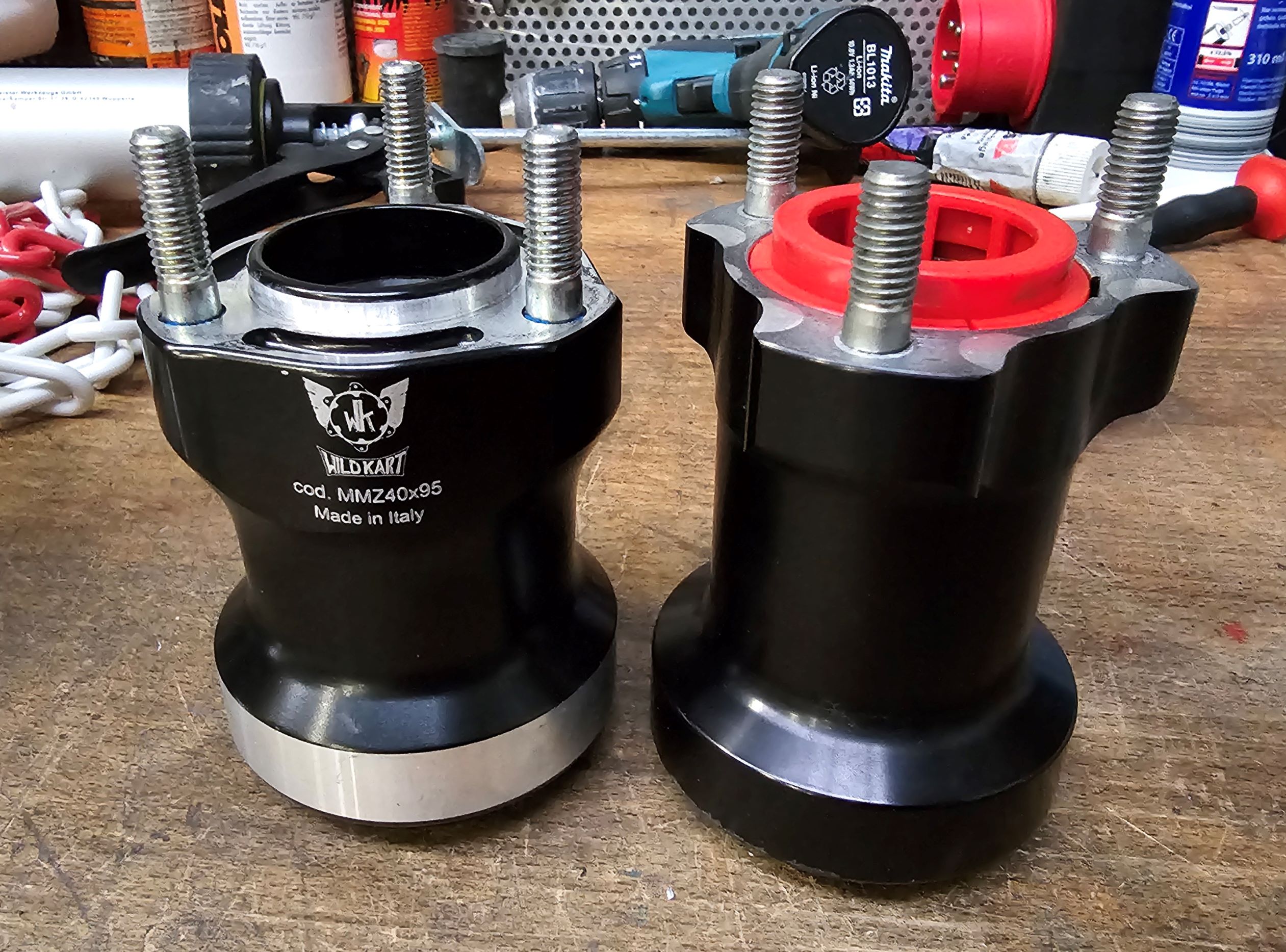 Wir haben zum Kauf verschiedene Radsterne dabei bekommen, bisher sind vorne die originalen Felgen verbaut. Also CRG mit 68er LK. Wir haben bei Blackfriday Douglas Aluregenfelgen und auch Magnesium low Profile mit 58er LK bestellt, damit wir flexibel tauschen können, wenn Kart 2 gefunden ist.