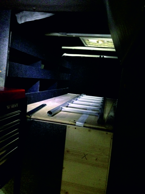 Bis jetzt habe ich etwa 22m Formrohr verbaut und 6m2 Stahlnetz (mit dem Eisenwarenhändler bin ich schon per "du"). Morgen gehe ich Holzplatten einkaufen (satte 10m2) und diese werden dann am Freitag und Samstag verbaut. Danach ist dann viel Kleinarbeit für Installationen und Geräte, das Projekt wird für den Grobausbau noch etwa 2-3 Werktage einnehmen, danach noch 4-6 Werktage für Kleinigkeiten (bin relativ ordentlich und will natürlich auch in den Werkzeugkisten für den Schlüssel eine Ablage haben, etc.).