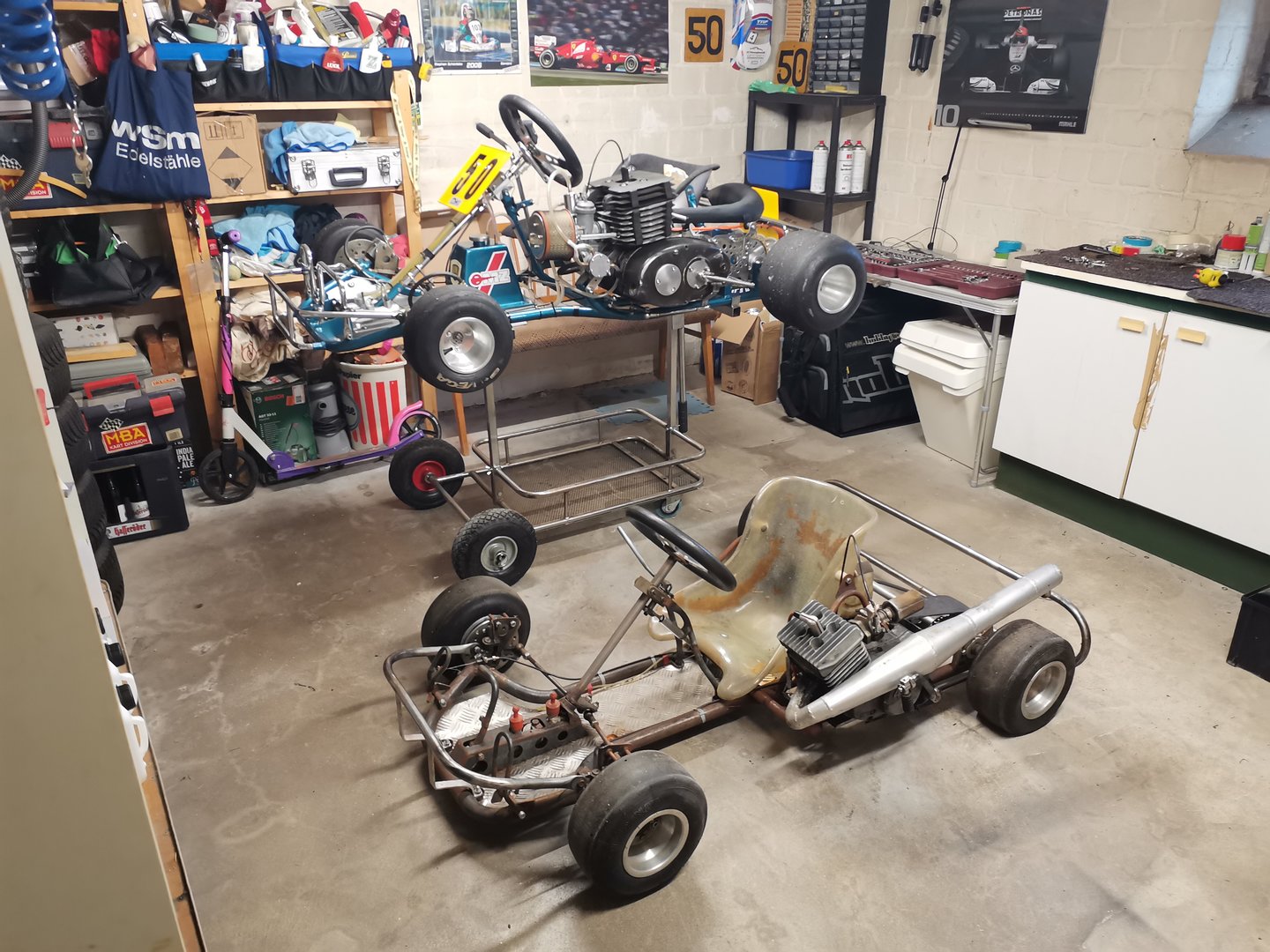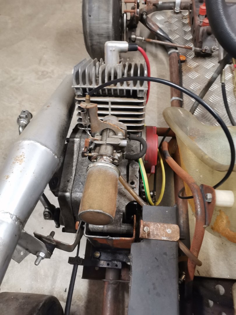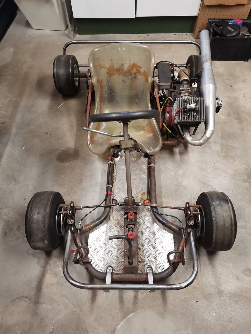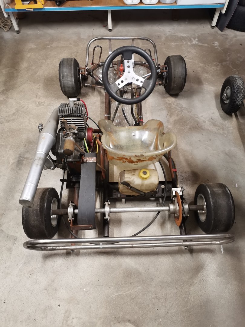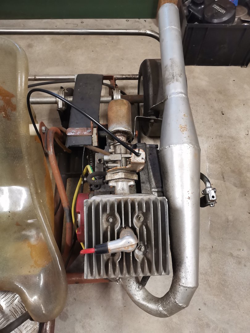 Der 50ccm K Wagen, um den es hier geht, hat für mich selber auch eine emotionale Bedeutung. Mein ehemaliger Teamchef fuhr zu DDR Zeit Tourenwagen Rennen, seine Schwester war in der 50ccm Kart Klasse unterwegs. Nachdem die Karriere beendet war, wurde der K Wagen kurz vor der Wende verkauft und der Vater meines ehemaligen Teamchefs hat sich kurz danach so drüber geärgert, daß er nochmal einen K Wagen gebaut hat. Leider ist das Auto nicht mehr fertig geworden und somit noch ein Rohbau. Zwar fahrbereit, aber nicht fertig. So ging das Ding in den Dornröschenschlaf. Nahezu 30Jahre. Ich habs mir nun zum Ziel gemacht, das Auto zeitgenössisch fertig zu bauen und zurück auf die Rennstrecke zu bringen. Einige Sachen müssen geändert werden, etliches erst neu gebaut werden. Mein Vorhaben ist, eine relativ nahe Replika vom damaligen K Wagen zu bauen.