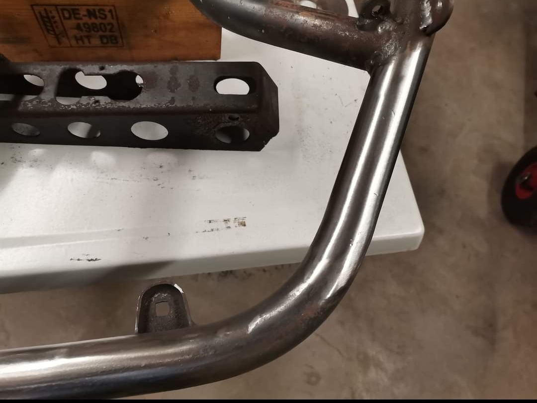 Der nächste Schritt bestand nun darin, den HBZ samt Rahmen wieder ins Chassis einzuschweißen. Parallel dazu entstanden zwei neue Aufnahmen für die Frontstoßstange. Da mir die alte Stoßstange optisch überhaupt nicht zusagt, kommt eine neue Stoßstange zum Einsatz, die der klassischen Form von damals entspricht. Unten wird sie in die beiden Rohr Hülsen gesteckt und oben an den ursprünglichen Laschen verschraubt. Da ich die Pedalerie auch komplett ändere und damals irgendwann die Regelung aufkam, daß Bremspedale geschlossen sein mussten, habe ich auch eine neue Bremspedal Aufnahme angefertigt. Ein klassisches Bremspedal, was sogar am ursprünglichen K Wagen von damals verbaut war, fand sich im Teile-Fundus. Ebenso das Gas und auch Kupplungspedal. Da liegt es natürlich nahe, die Sachen wieder einzubauen.