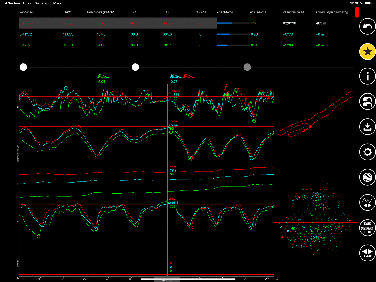 Zwischen den Turns natürlich immer mal auf die Daten vom Alfano geguckt. Schon auf der Strecke viel mir auf, dass die Abgastemperatur mit 640°C etwas hoch ist.