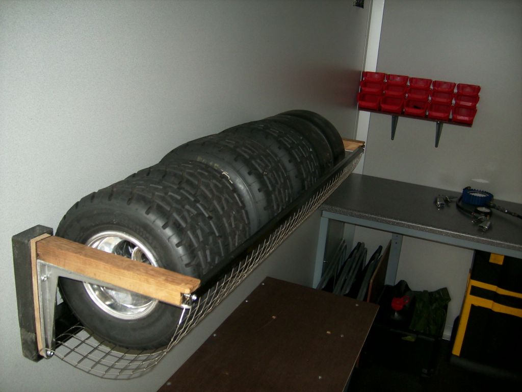 Im hinteren Bereich lassen sich 2 Karts übereinander lagern und transportieren. vorne befindet sich ein Kompressor, mit fest installierter Druckluftleitung (8 m).